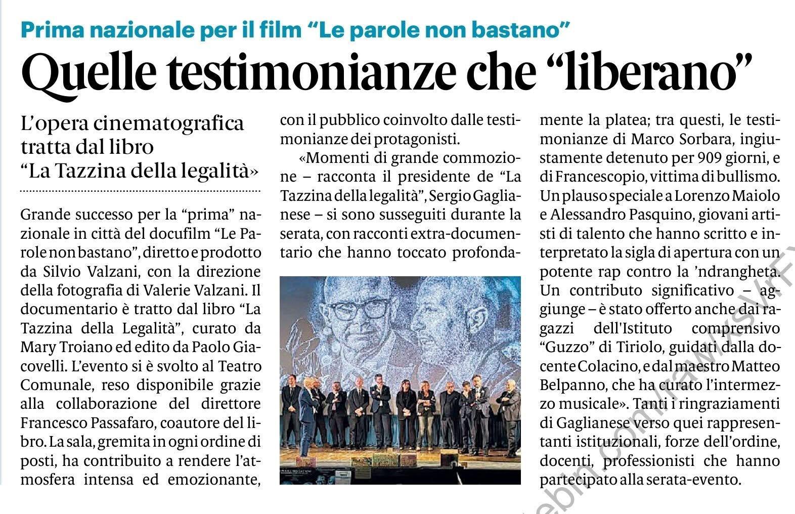 Prima nazionale per il film “Le parole non bastano”