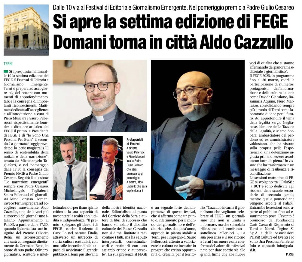 Si apre la settima edizione di FEGE – Domani torna in città Aldo Cazzullo