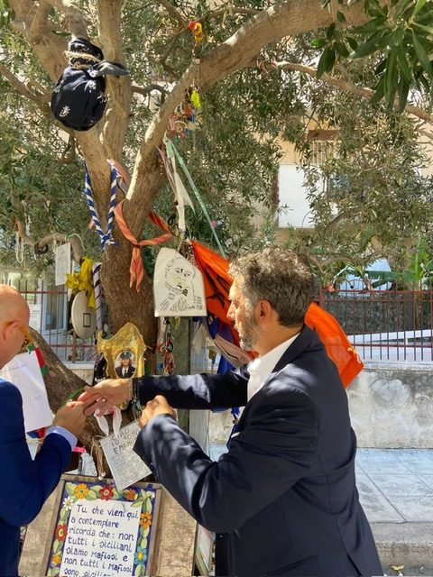 Oggi a Palermo, prima di ricevere il Premio Picciridda a Partanna ci siamo recati in via Amelio con la tazzina della legalità con Sergio Gaglianese (presidente della tazzina) Piera Aiello, Enza e Tiberio Bentiviglio